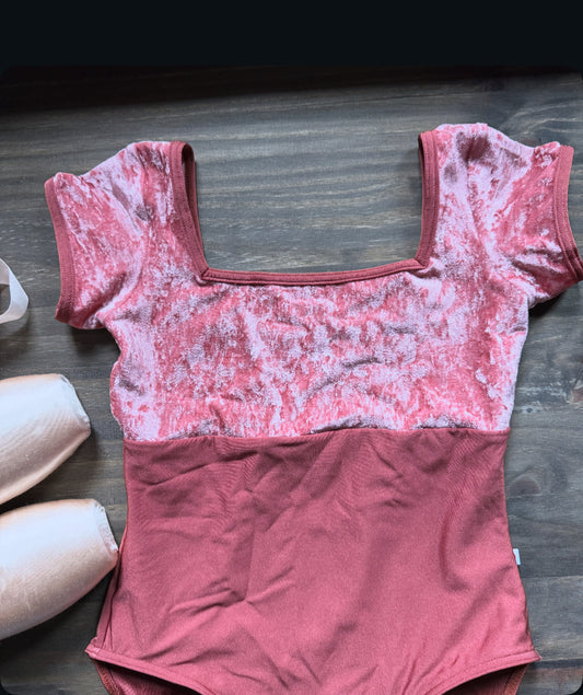 Meagan Mesh Cap Sleeve Leotard - Rosewood