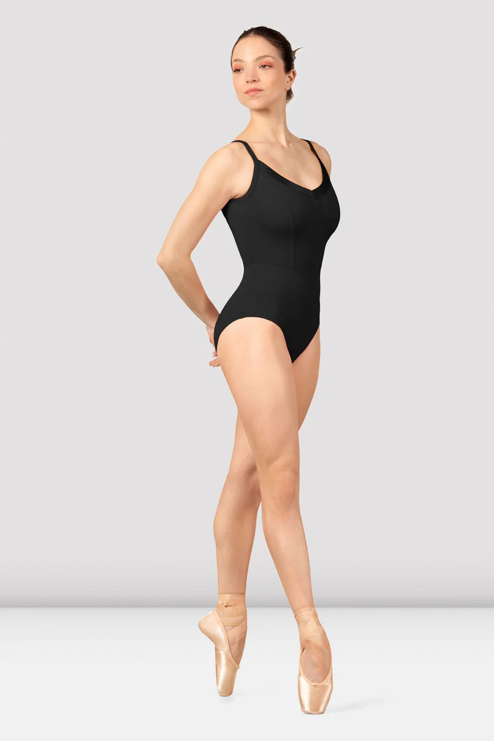 Our Ladies Mirella Majesty Low Back Leotard features a romantic princess seamed bodice, with delicate camisole straps with striking high shine elastic trimming the V front and back. Discover our Ladies Mirella Majesty Collection; featuring exquisite stretch lace and lustrous high-shine trims that catch the light, ensuring all eyes are on you. Available in a trio of regal tones to express your unique style.