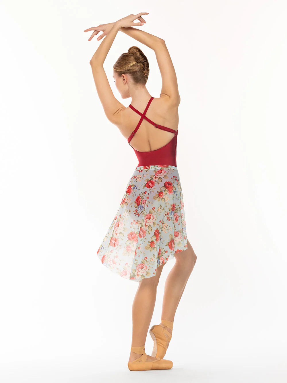 Mesh pull-on high low skirt in Always & Forever floral print.
