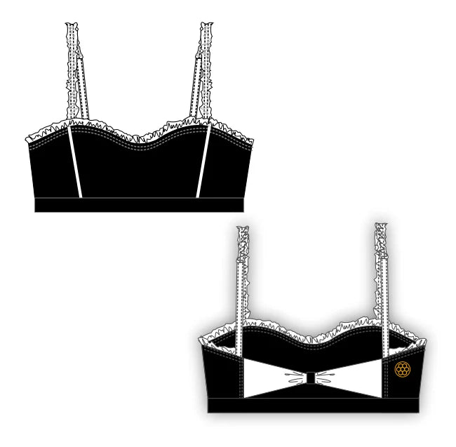This top is everything! Our super soft fabric is shaped into a curved bodice with contrast contoured mini ruffle across the top edge, rushed ruffle adjustable straps and back contrast bow finish. Our circle silicone logo finished off at the back right side. Pair it with our drop front Lily short. Bonus: interior pad pockets.