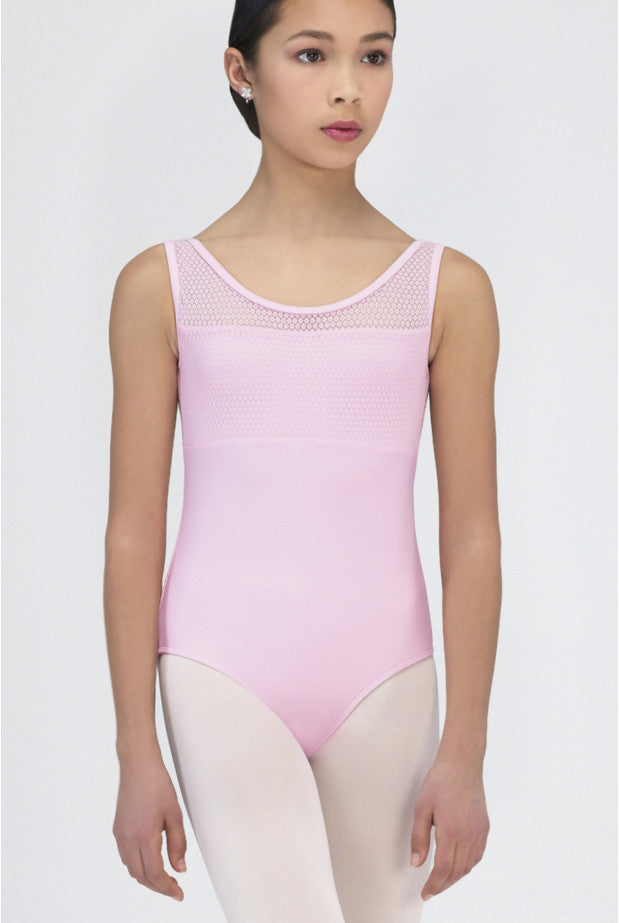 A microfiber tank leotard with innovative mini flower lace details on bust, waistline, and back, beautiful open mid-back. Ballet leg cut and superior fit. A classic silhouette with a touch of modern. Full front lining.
